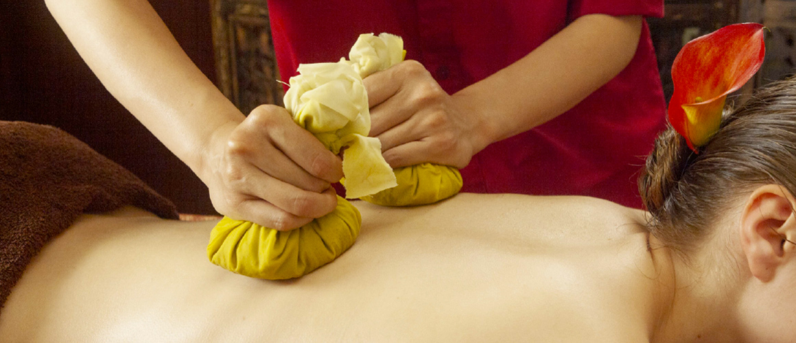 | ハーブボール施術 応用1 | タイマッサージストレッチ×ハーブボール併用法 |